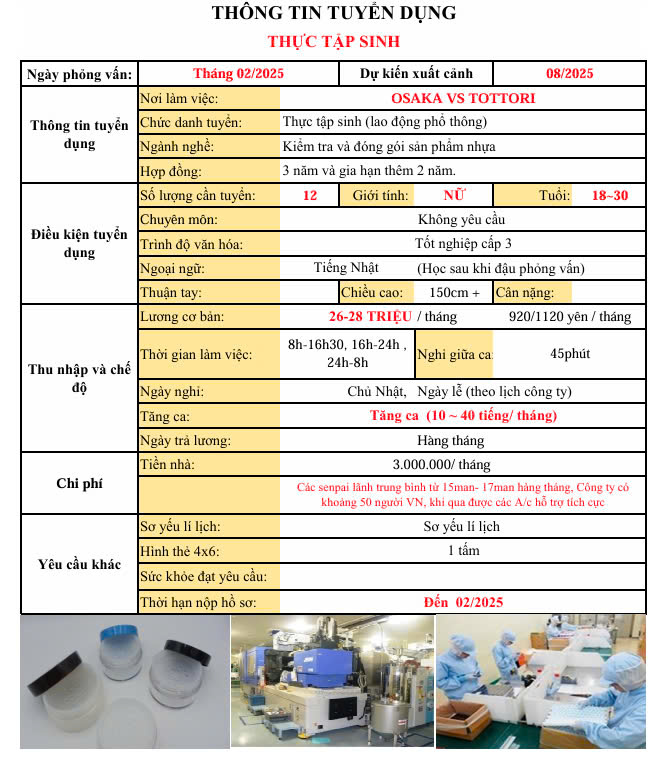 Thực tập sinh (Lao động phổ thông): Kiểm tra và đóng gói sản phẩm.